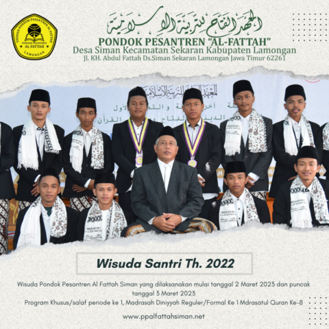 Lamongan- Wisuda Pondok Pesantren Al Fattah Siman yang dilaksanakan mulai tanggal 2 Maret 2023 dan puncak tanggal 3 Maret 2023, acara wisuda dimulai pada malam hari sebagai kegiatan Haflah yang